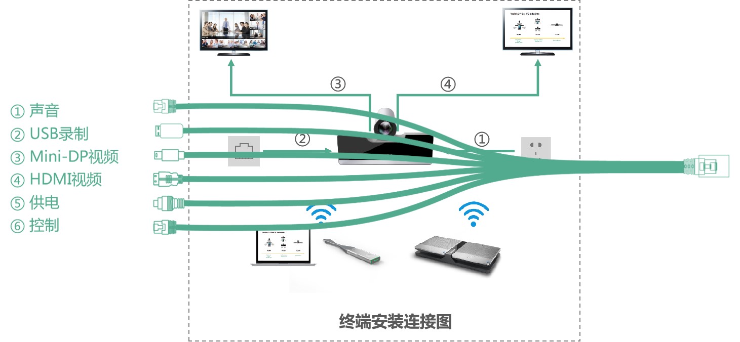 VC880+VCC22支持多角度取景;擁有豐富的音視頻物理接口,配備專業(yè)的RCA音頻輸入輸出接口,與調(diào)音臺及桌面鵝頸麥克風(fēng)系統(tǒng)集成。采用分體式設(shè)計,貼合超大會場部署在控制室的需求,三線合一,降低布線難度與成本。