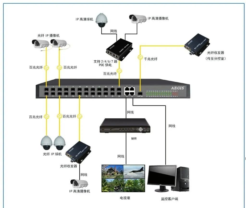三、光纖架構(gòu):網(wǎng)絡攝像機+光纖+收發(fā)器